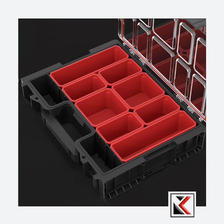 De Qbrick System PRO Organizer 300 is de grootste organizer uit de PRO-serie, speciaal ontwikkeld voor professionals en doe-het-zelvers die veel klein gereedschap, accessoires of onderdelen overzichtelijk willen opbergen. Met een ruime inhoud van ongeveer 12–15 liter, stevige constructie en modulair ontwerp biedt deze organizer optimale bescherming en organisatie.